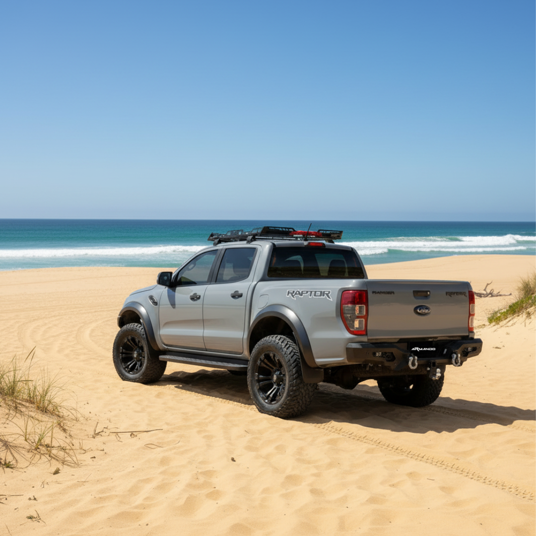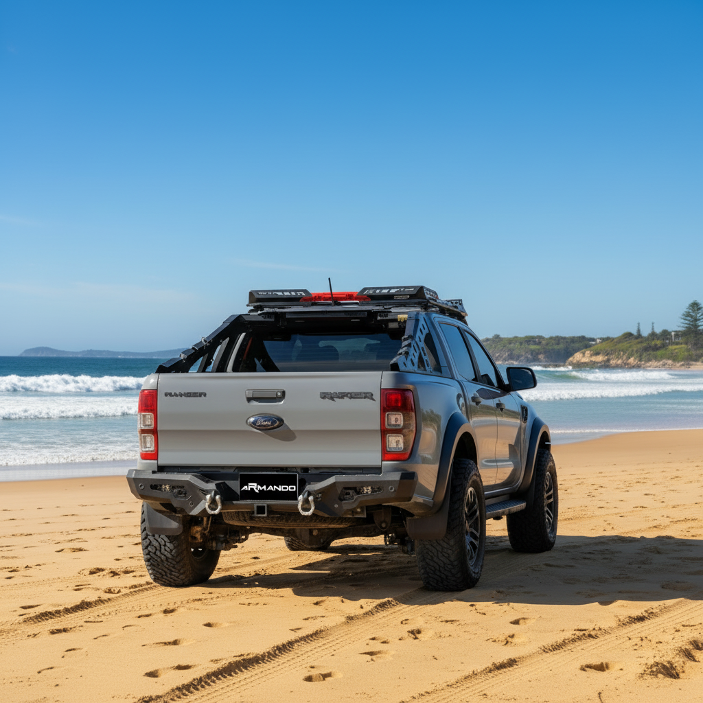 Designed for seamless bolt-on installation using factory mounting points, this rear bar installs with minimal fuss and retains compatibility with original equipment like parking sensors. Whether you’re towing gear, backing up in rough terrain or simply want added peace of mind on the road, the Armando Combat Rear Bar is a practical and stylish upgrade that enhances both protection and capability for your Ford Raptor.