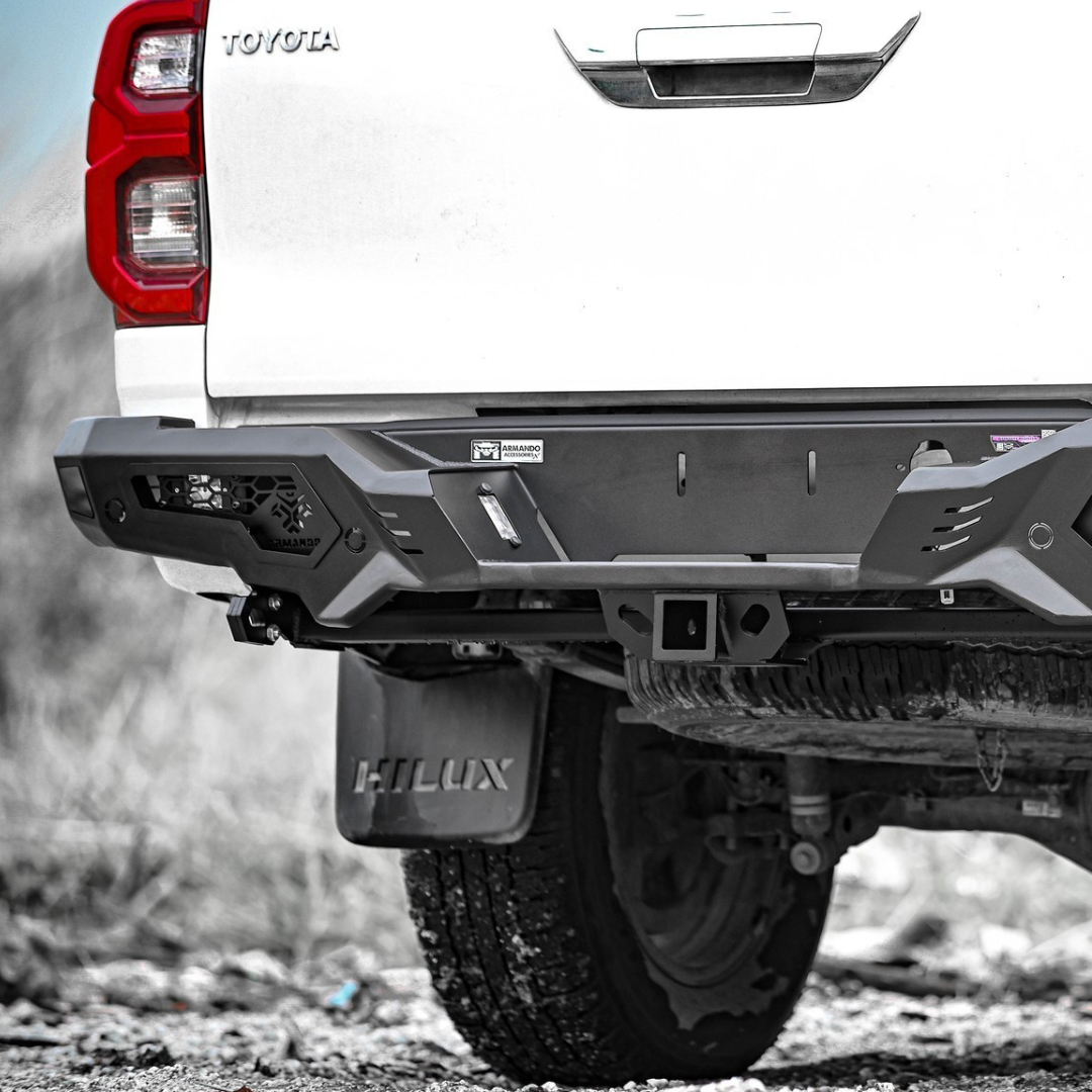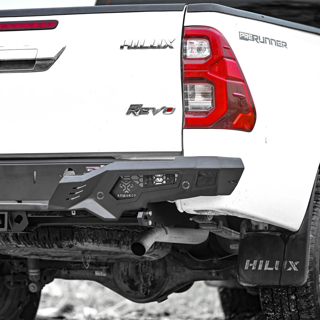 With a precision fit for the Hilux, the Armando Rear Bar provides maximum protection and functionality. It is compatible with OEM sensors, offering peace of mind and seamless integration. Whether you are tackling off-road terrain or using your Hilux for work, this rear bar ensures durability, reliability, and long-lasting performance.